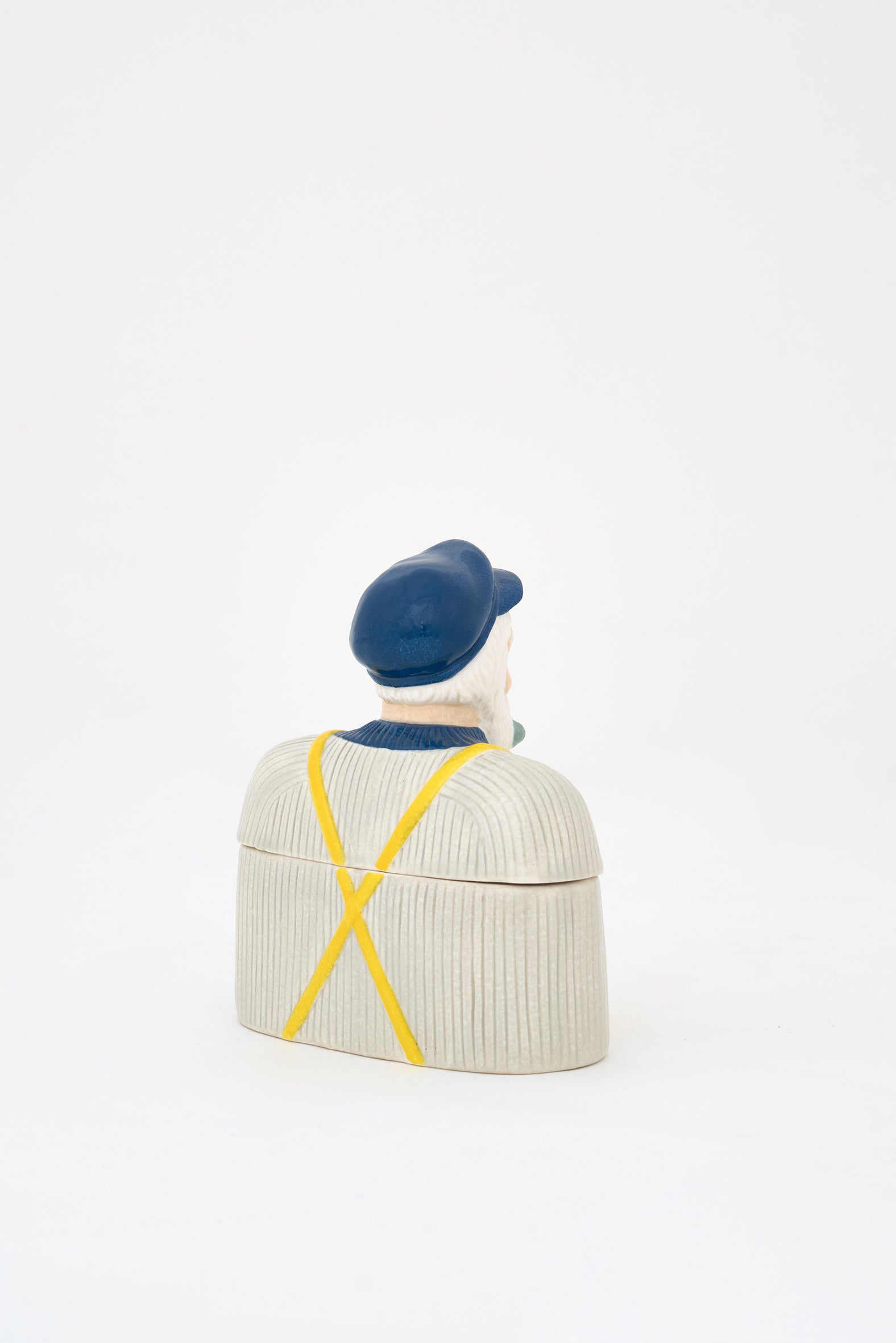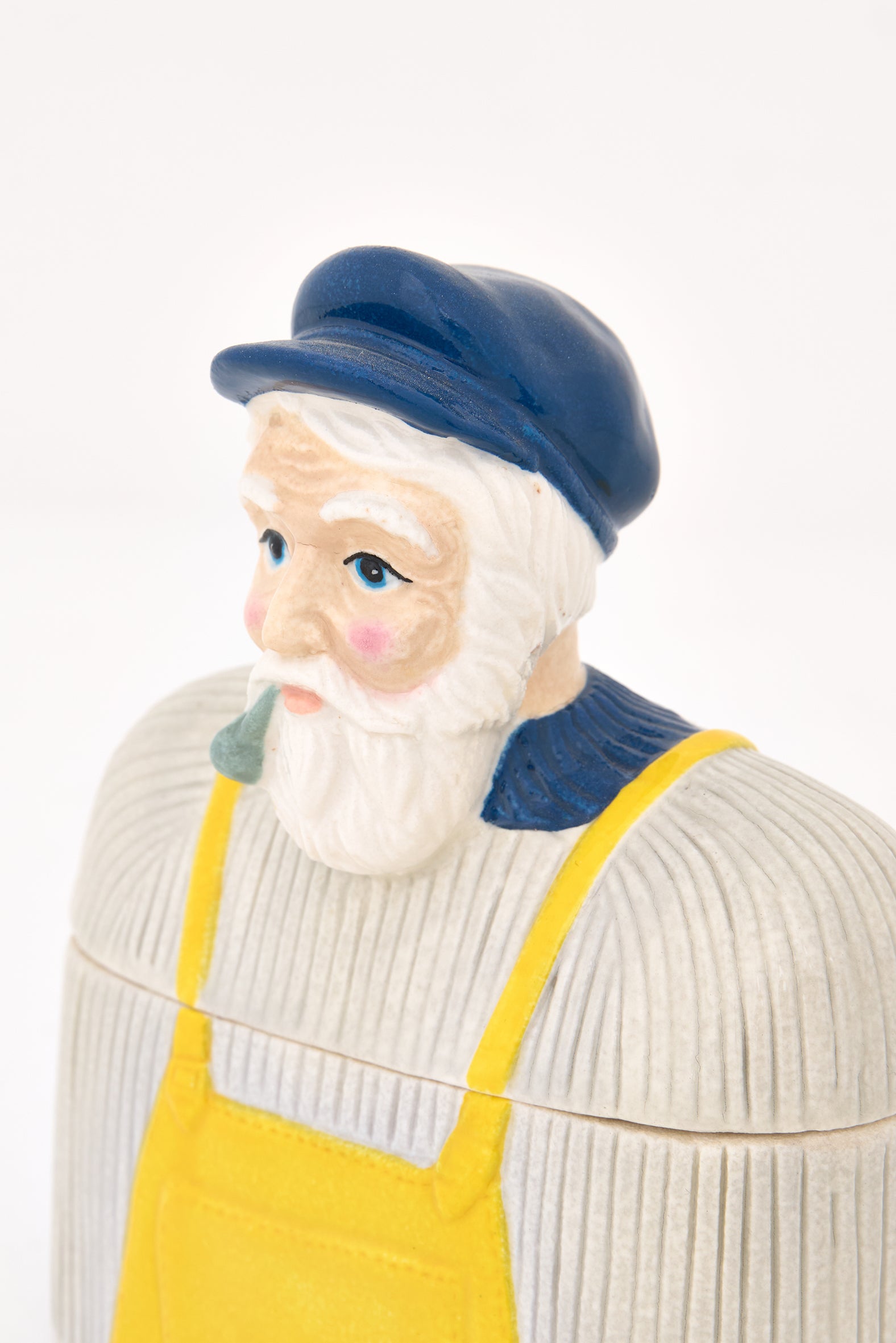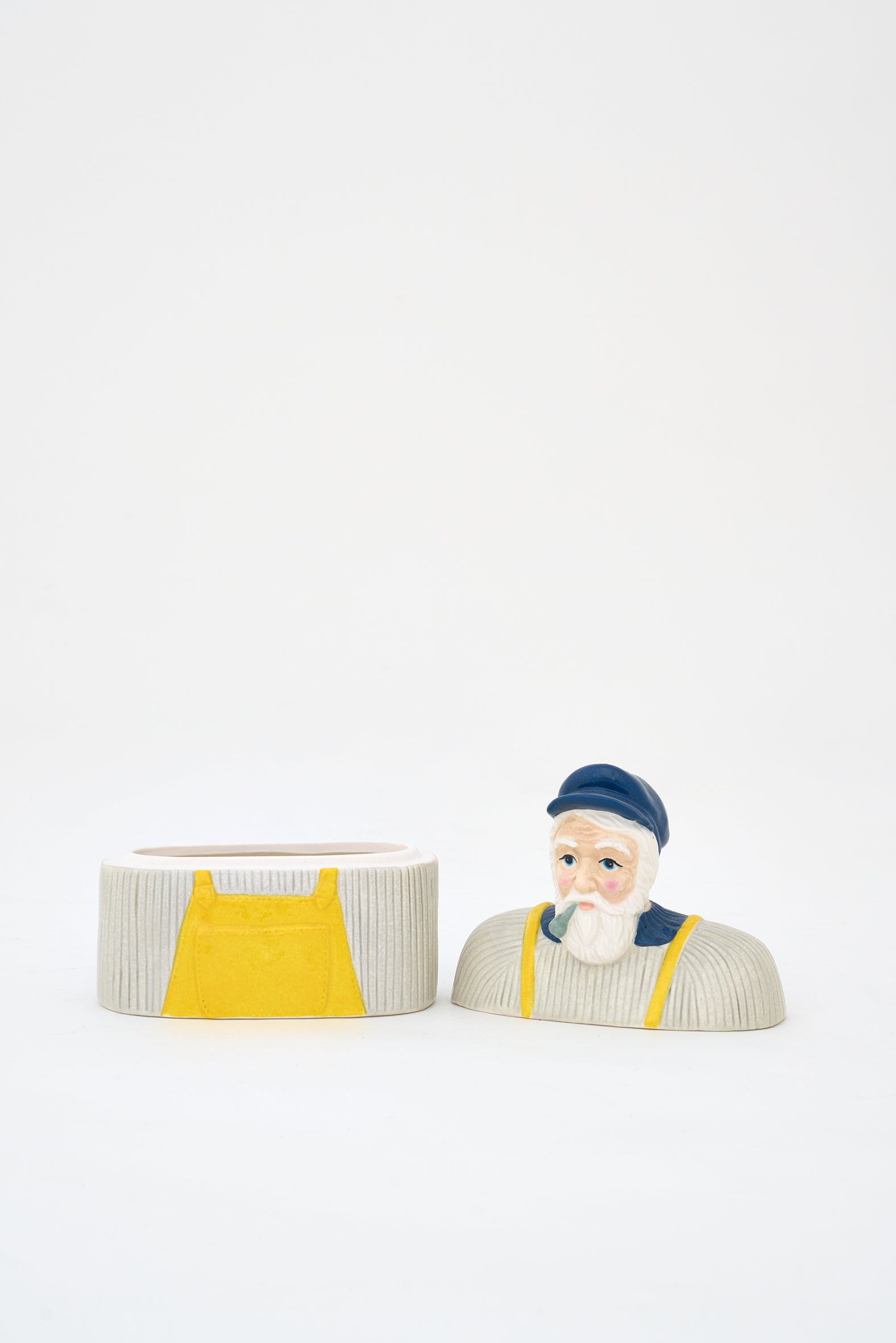 Decorative ceramic box with a fisherman figure and glazed finish. A functional and decorative object in a nautical style, ideal for adding a coastal touch to any room.