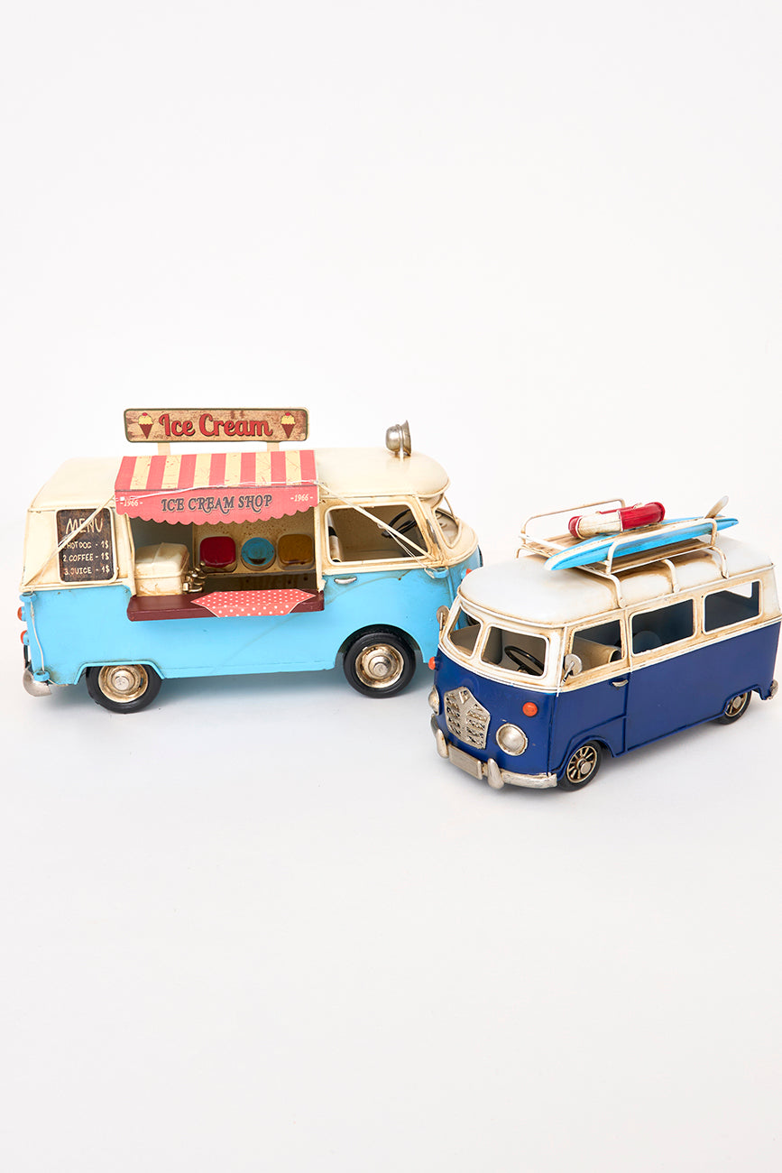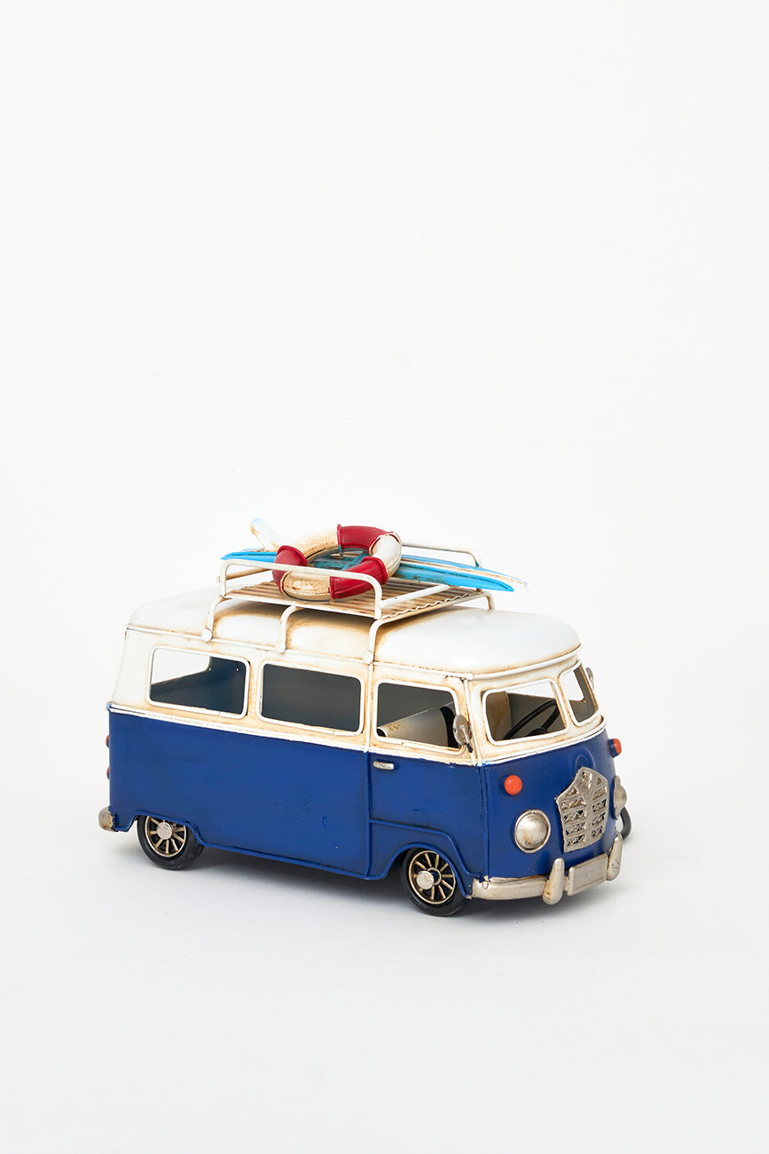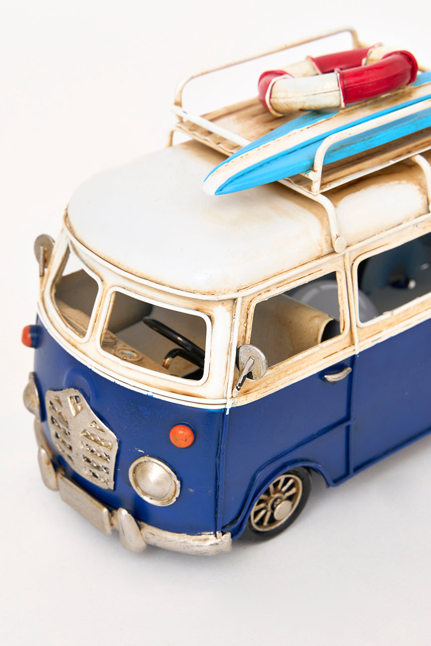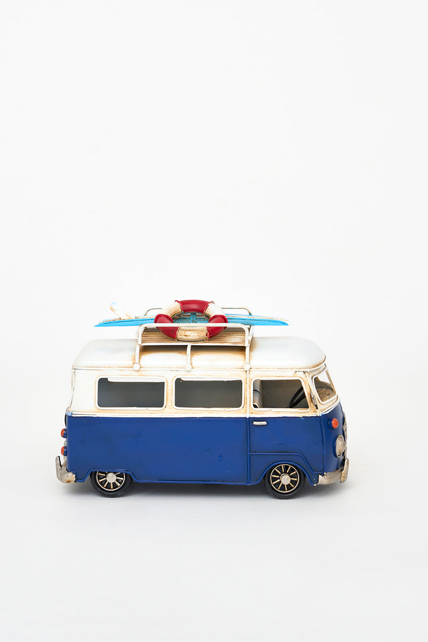 Lámpara decorativa de metal con forma de furgoneta surfera.