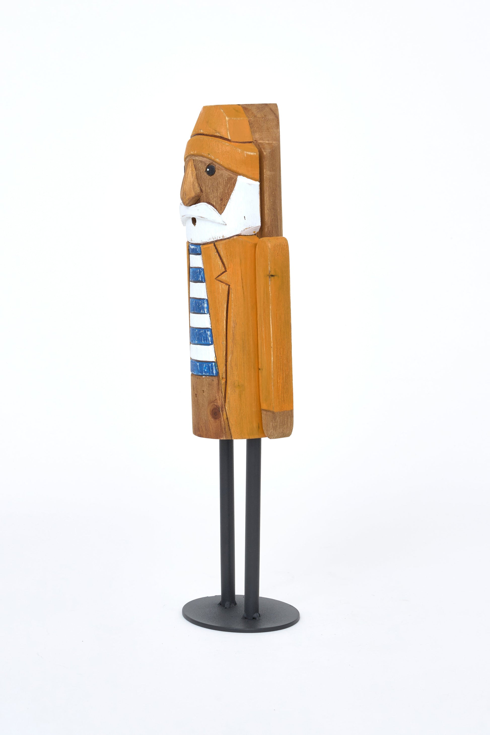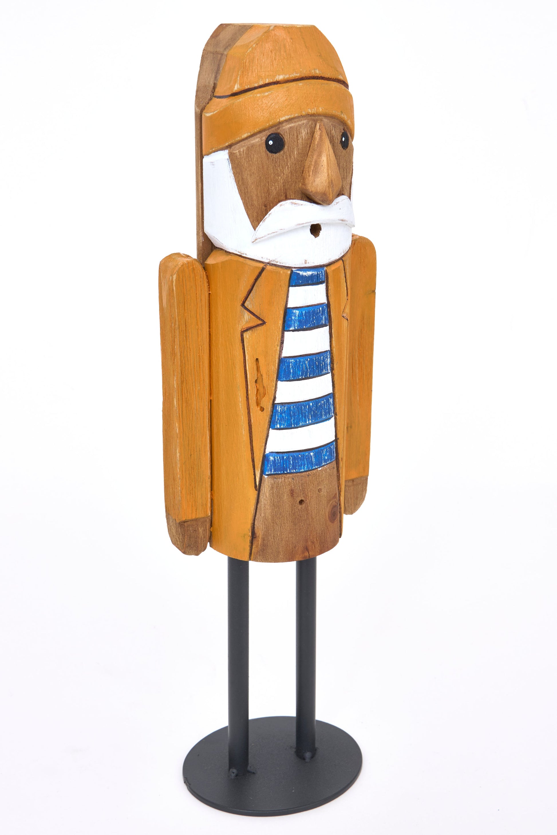 Marinero decorativo elaborado en madera con base de metal y aspecto simpático.
