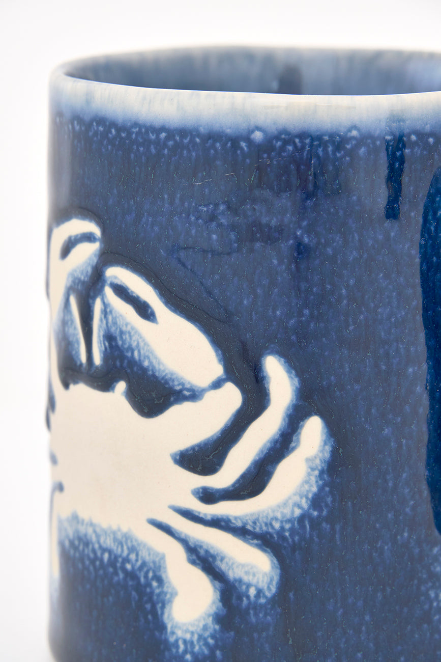 Taza de gres azul marino con cangrejo