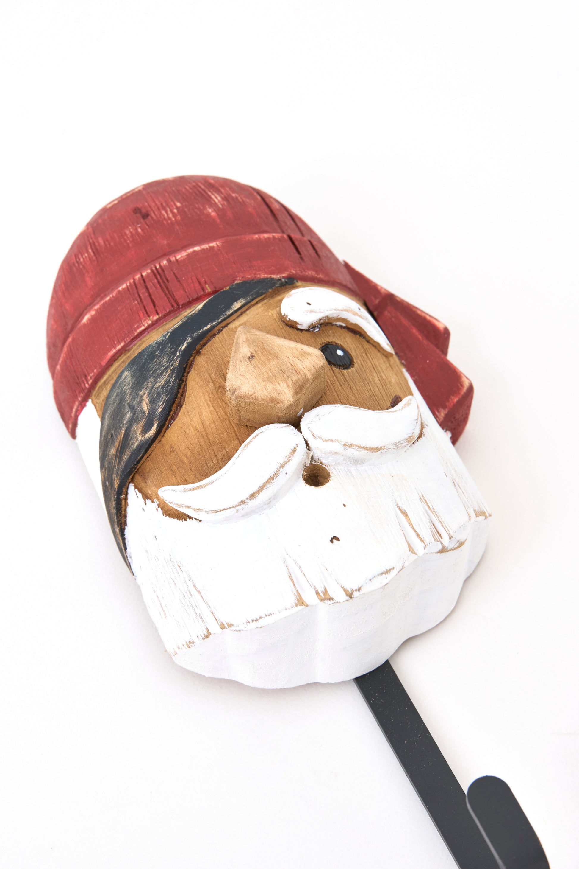 Colgador con figura de pirata decorativo elaborado en madera y gancho de metal.