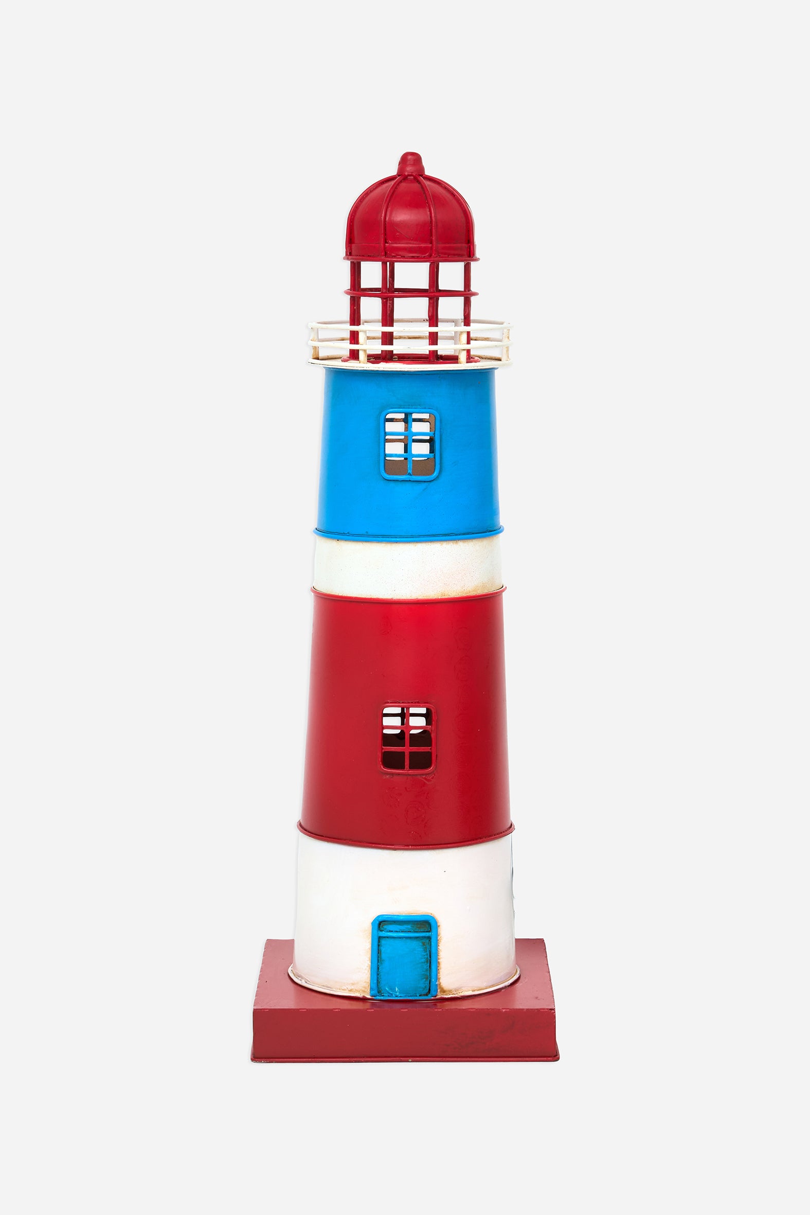 Metalezko lanpara gorri-urdina, itsasargi-formakoa