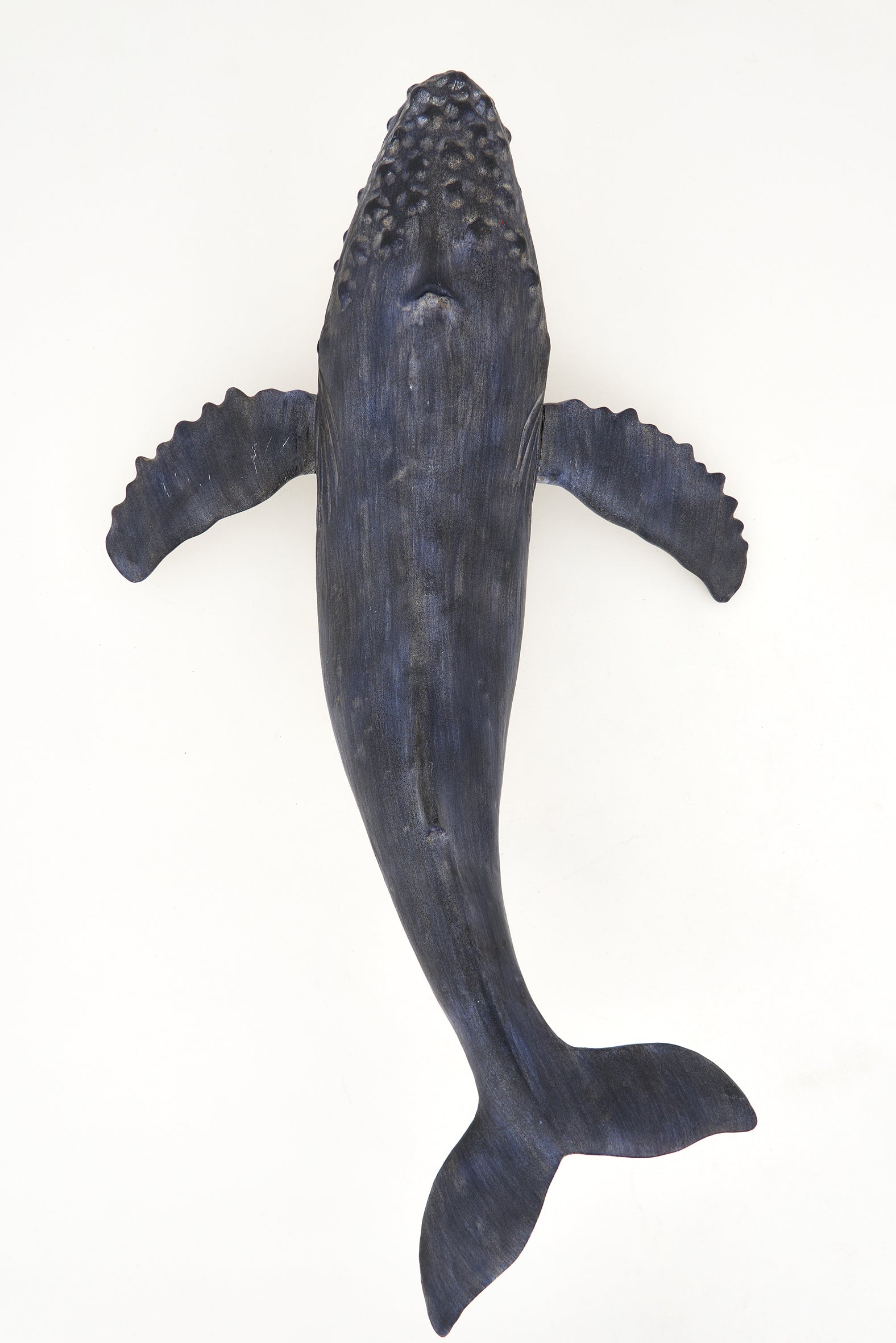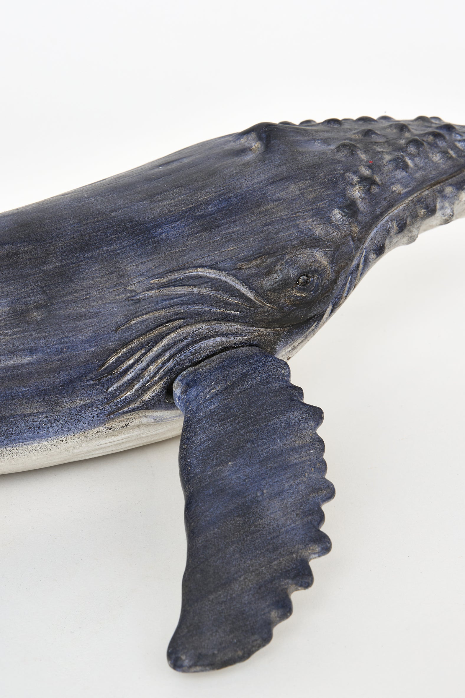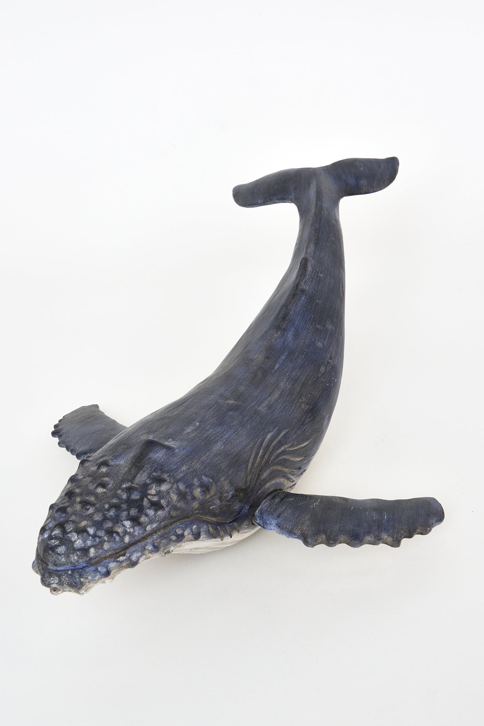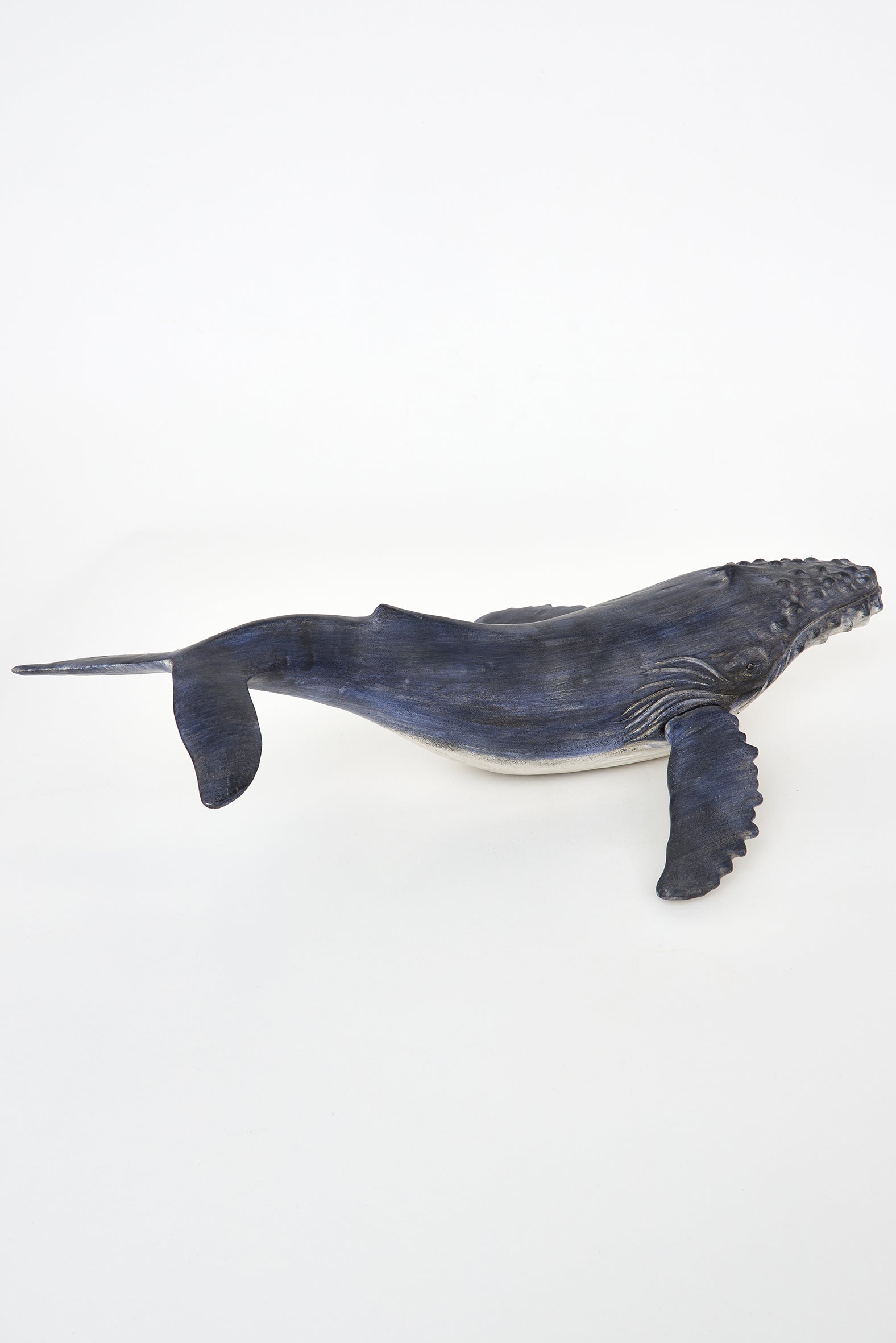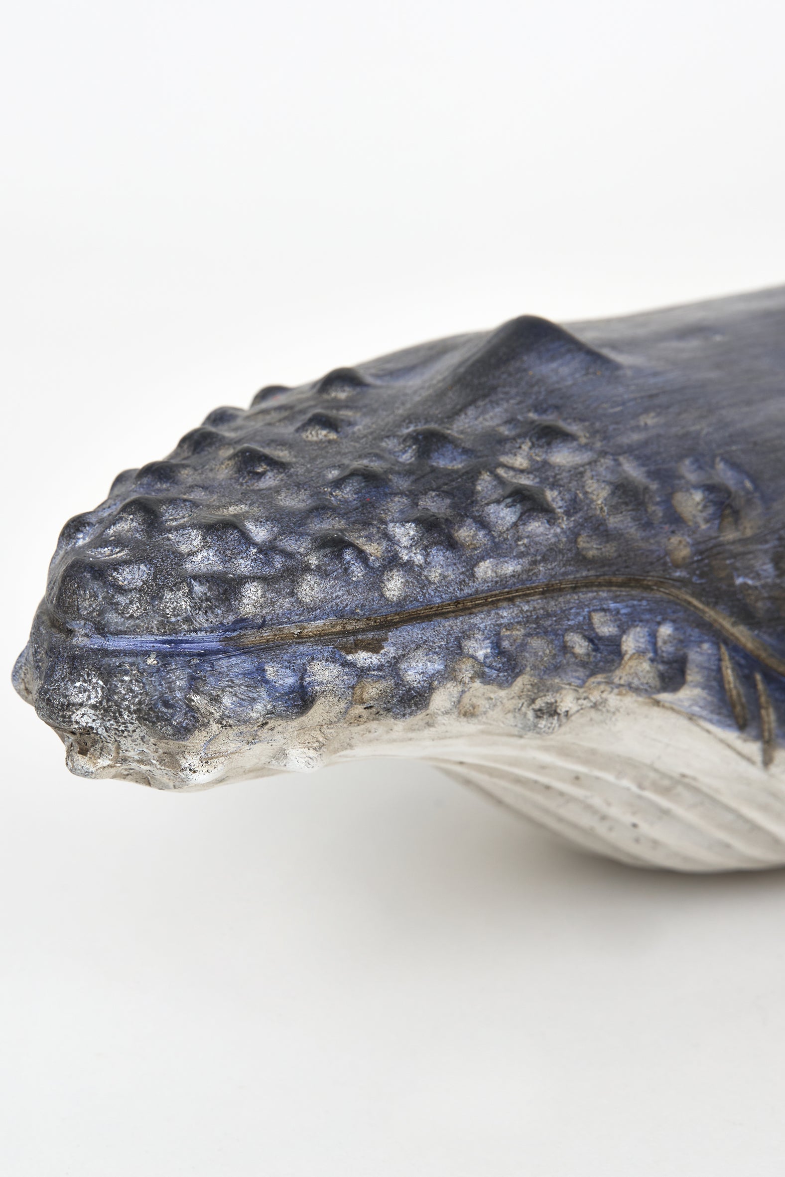 Balea-formako erretxinazko irudi apaingarria, tonu zuri eta naturaleko akabera zahartuarekin. Itsasoan inspiratutako elementua, aproposa kosta-kutsua emateko.