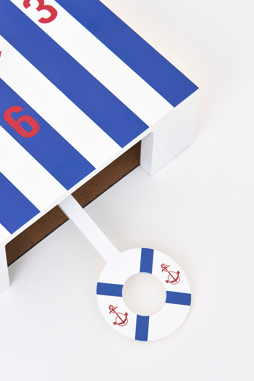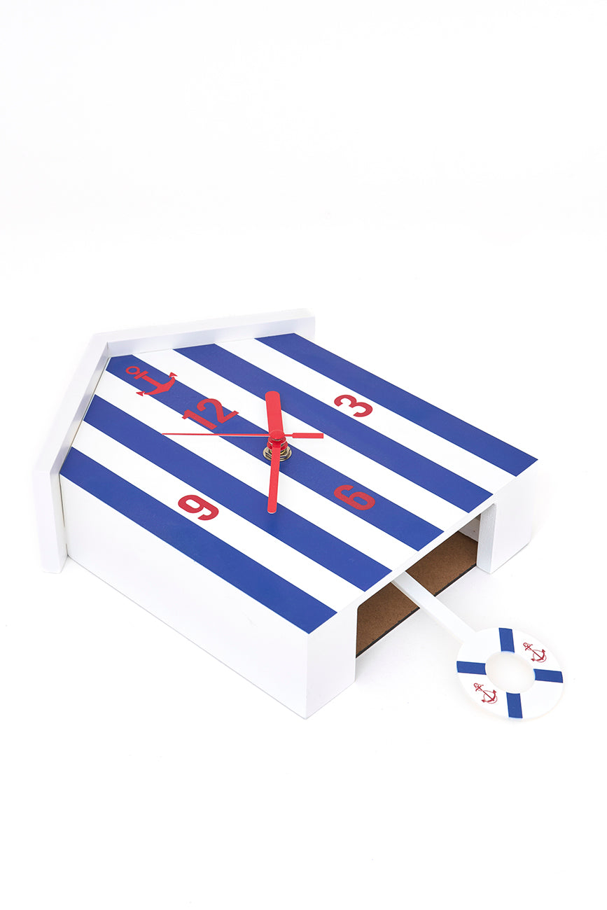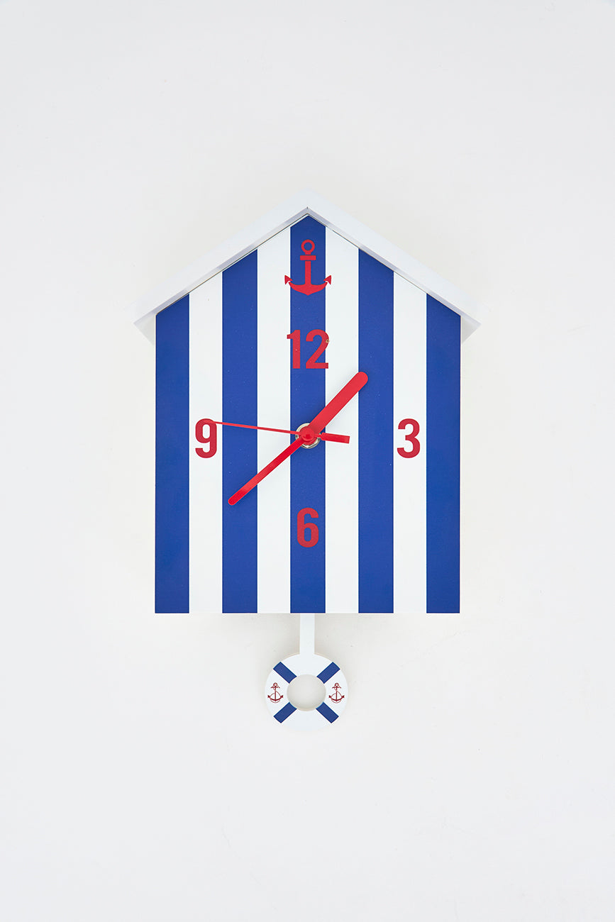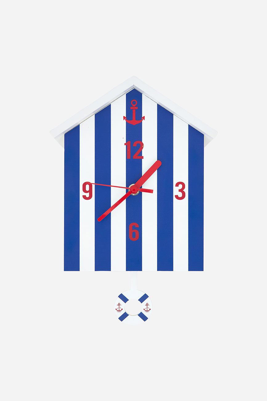 Egurrezko erlojua, hondartzako aldagela baten formakoa