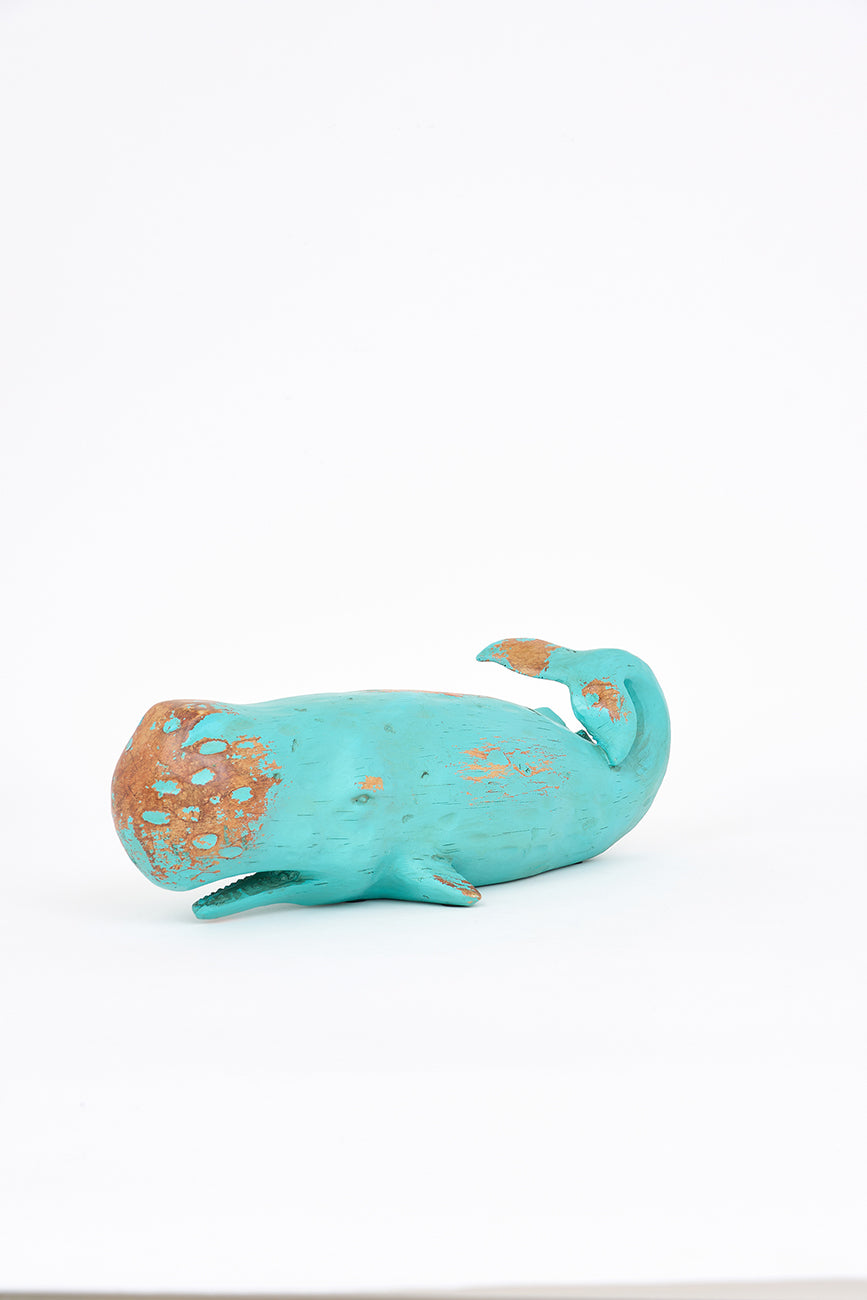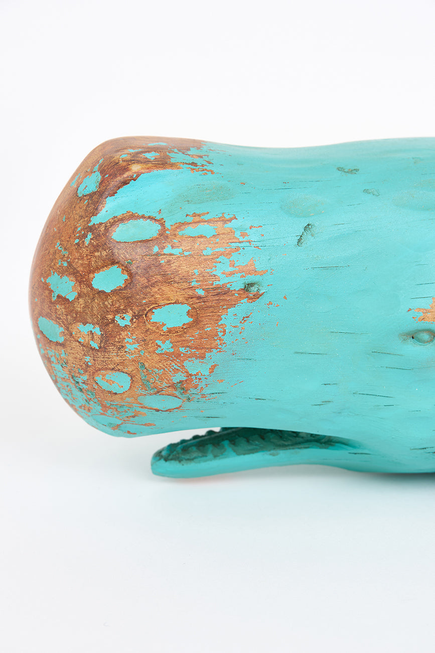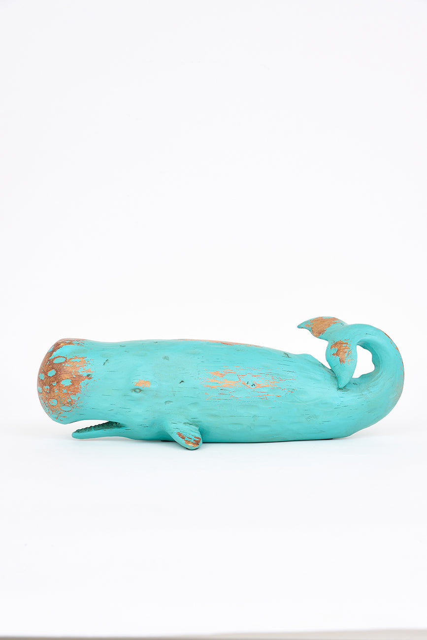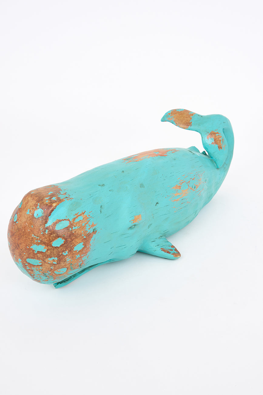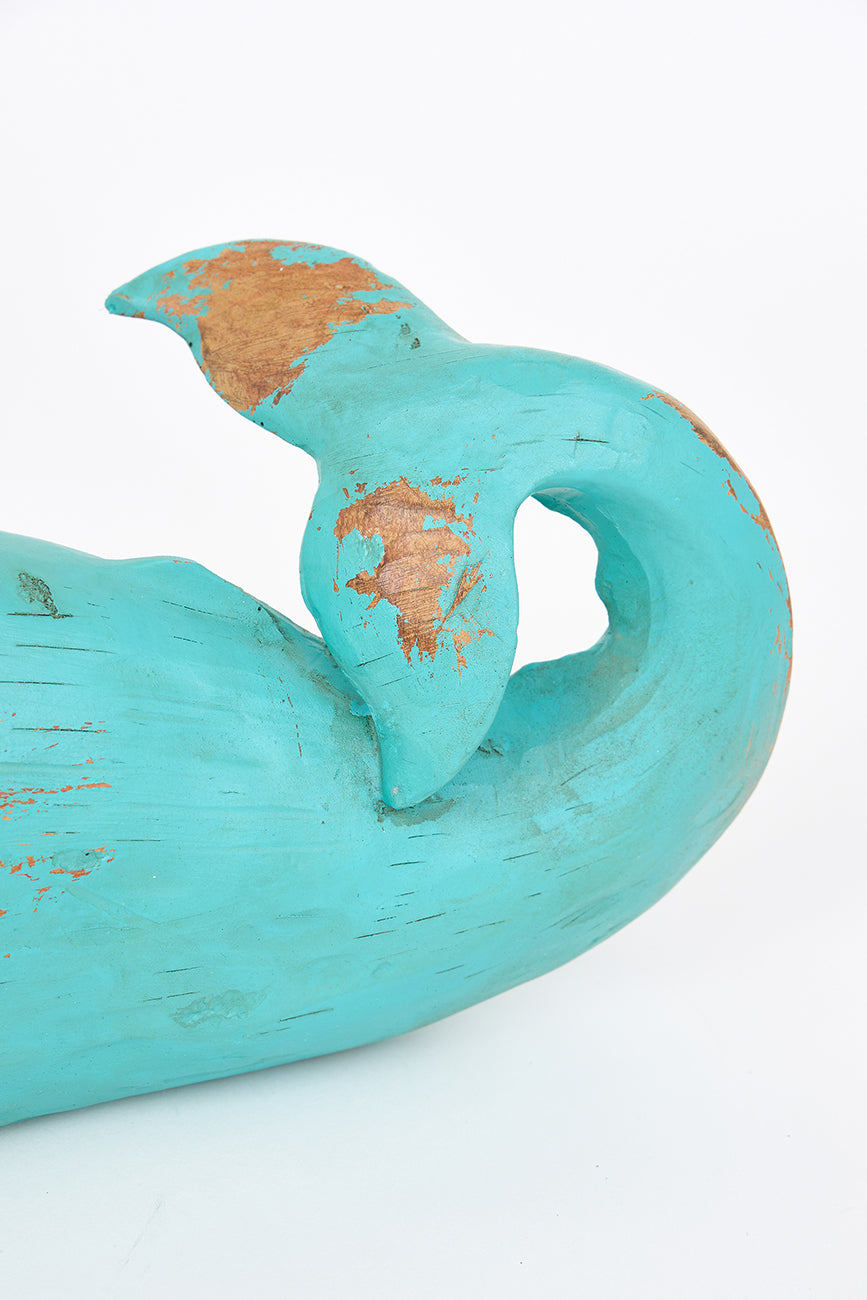 Cachalot grand fabriqué en résine. Sa finition imite le bois vieilli. Posé sur une étagère, il donnera une atmosphère marine à la pièce.