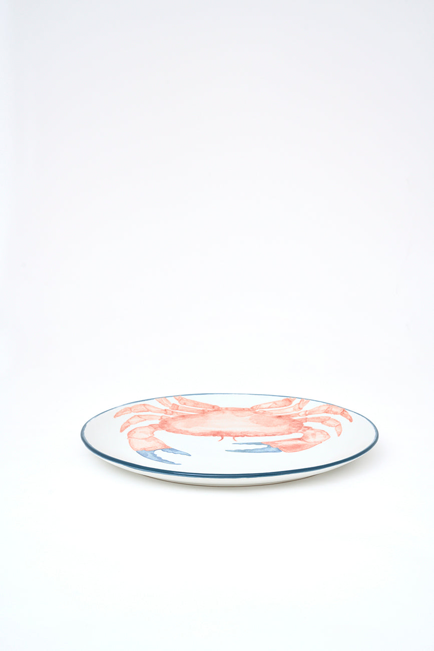 Plato grande elaborado en gres con cangrejo pintado. Puede utilizarse para servir alimentos o como elemento decorativo. Una pieza funcional y decorativa con inspiración marinera.