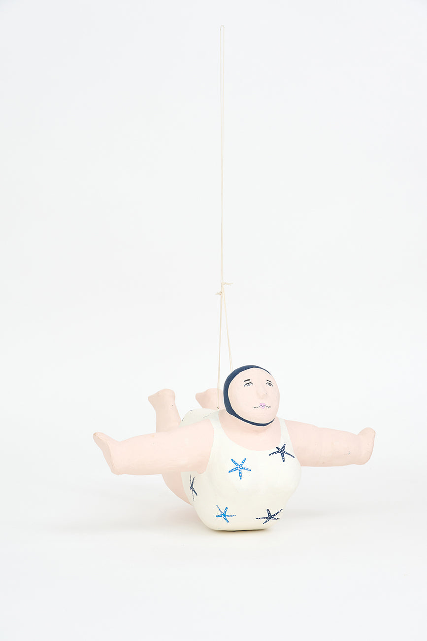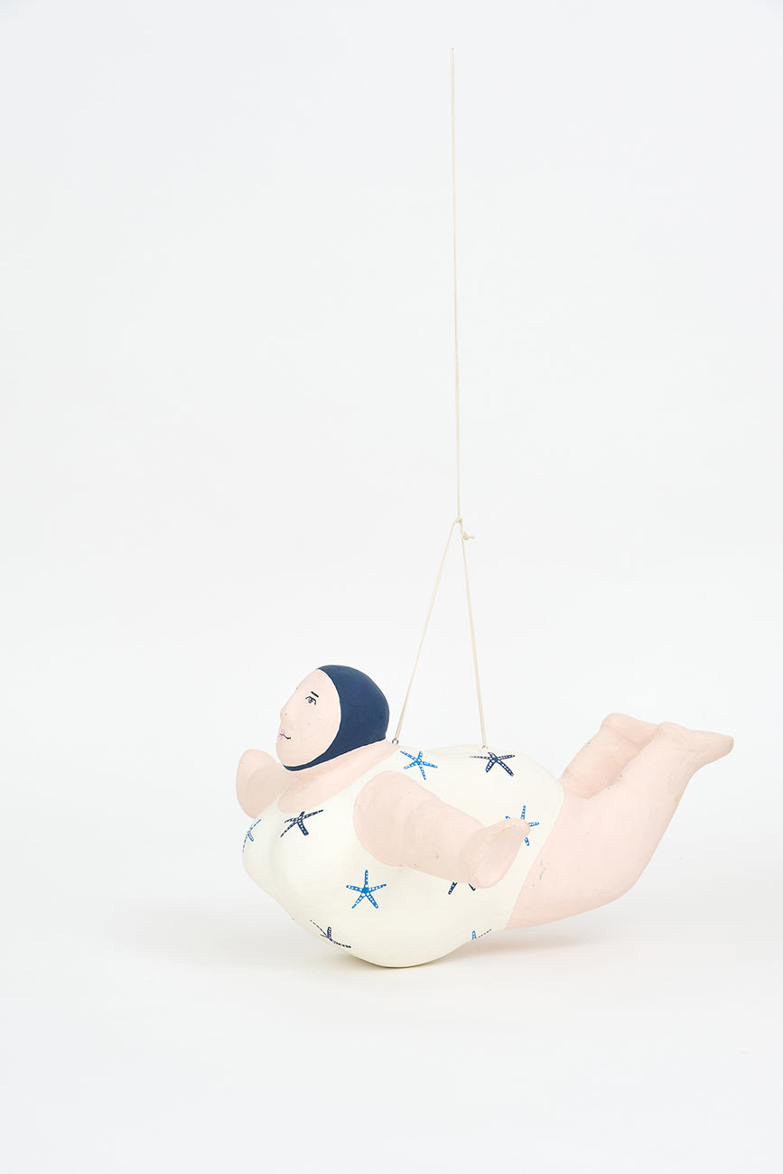 Bañista hecha en papel maché para colgar.