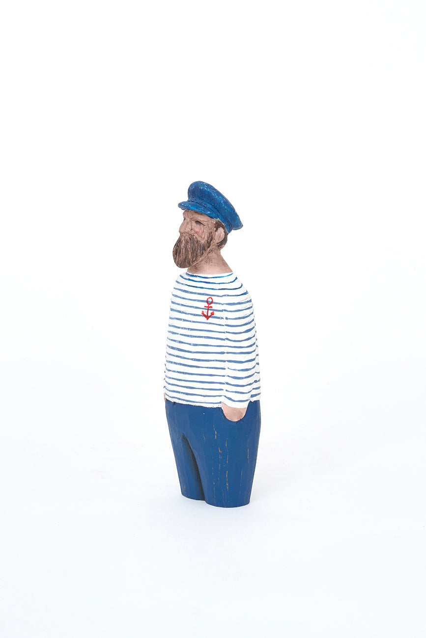 Pequeño marinero decorativo elaborado en madera con aspecto rudo.