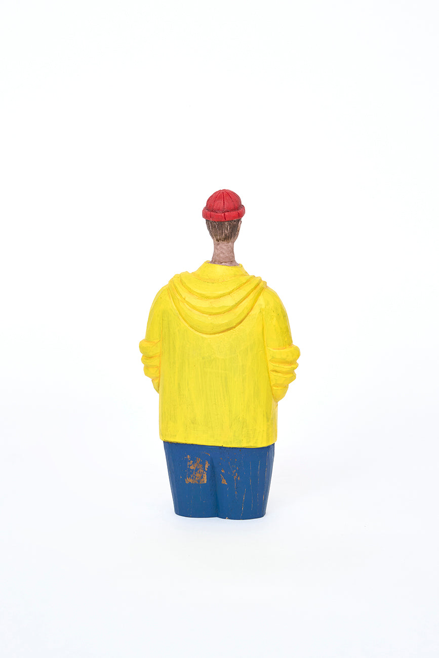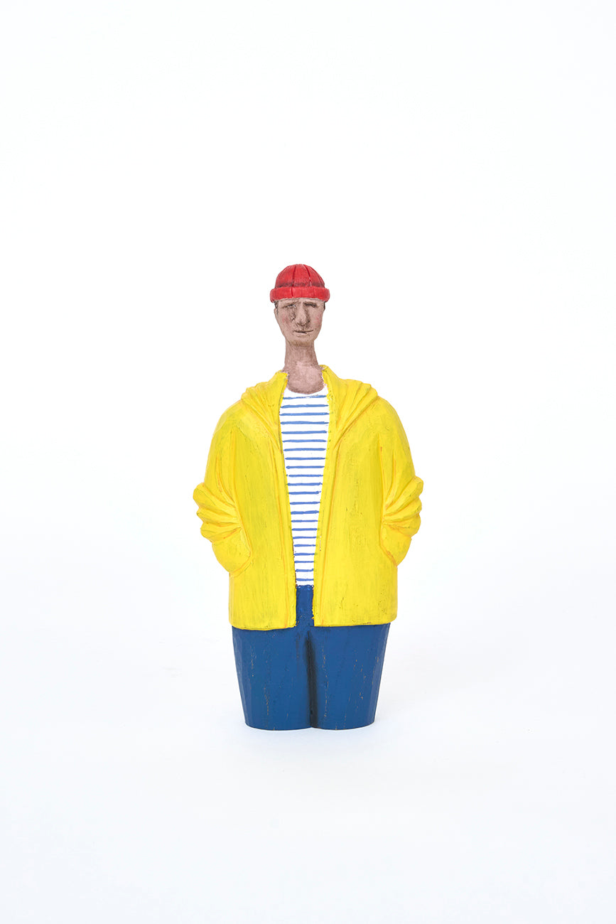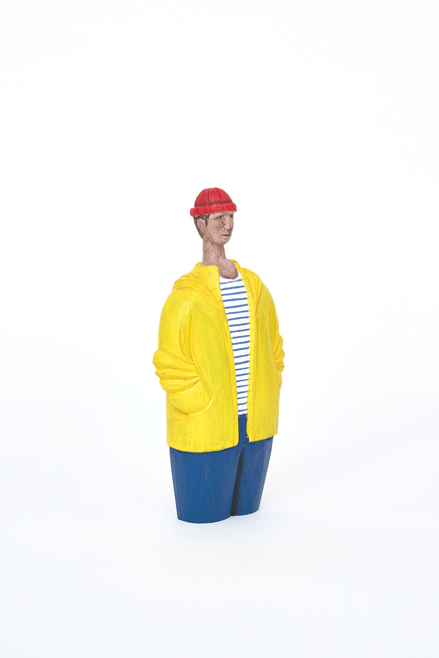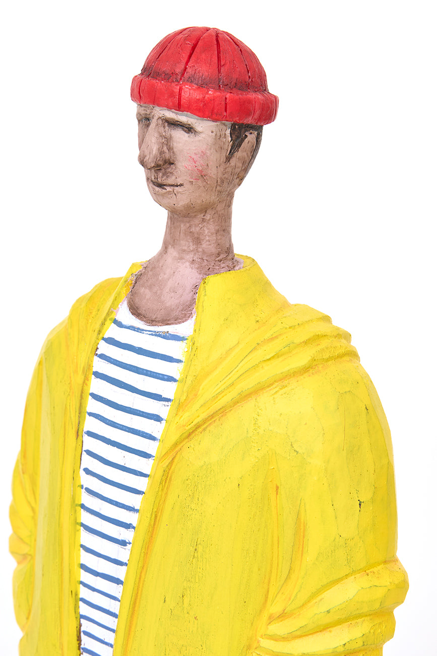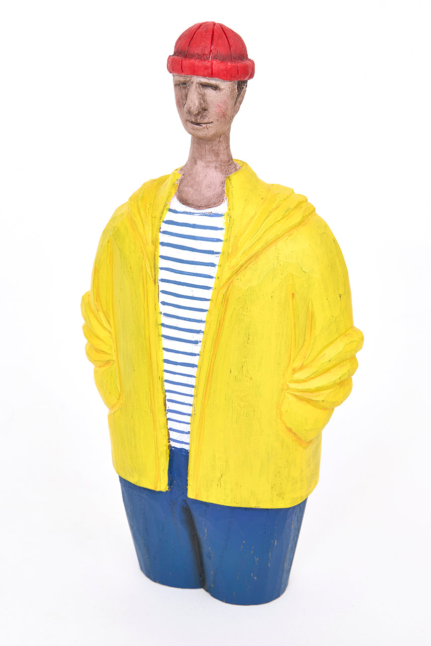 Marinero decorativo de madera con chubasquero