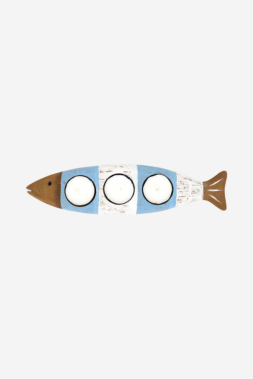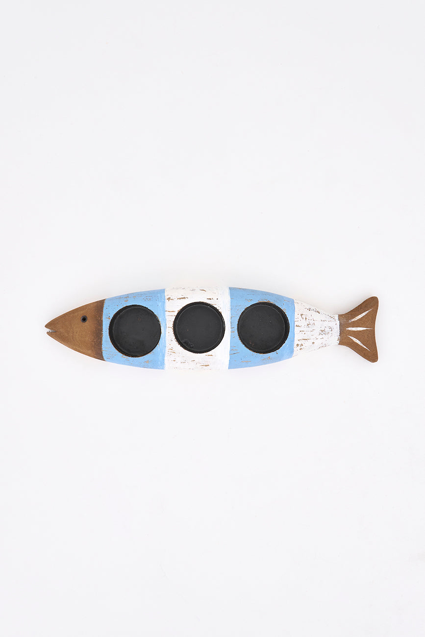 Portavelas de madera con forma de pez