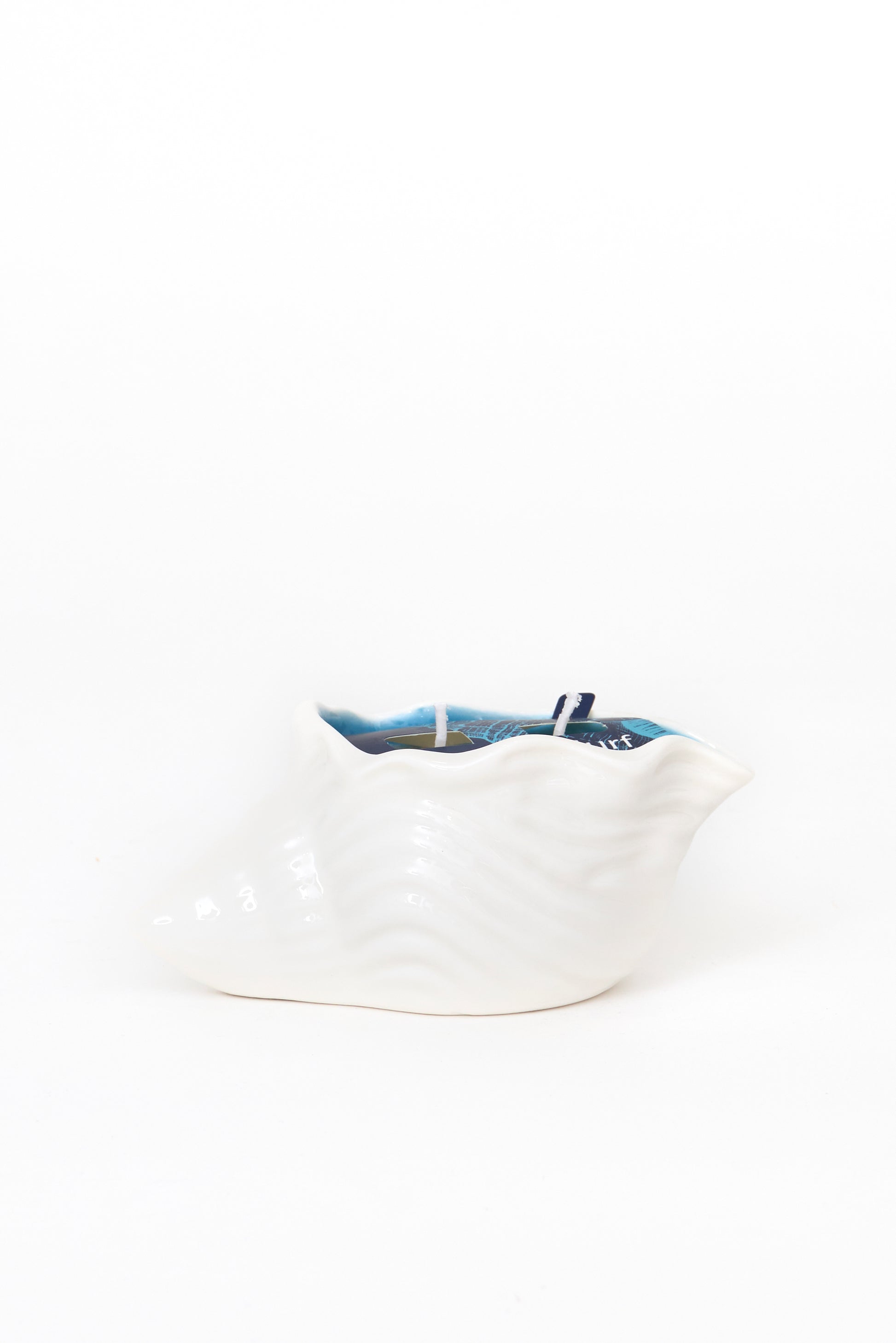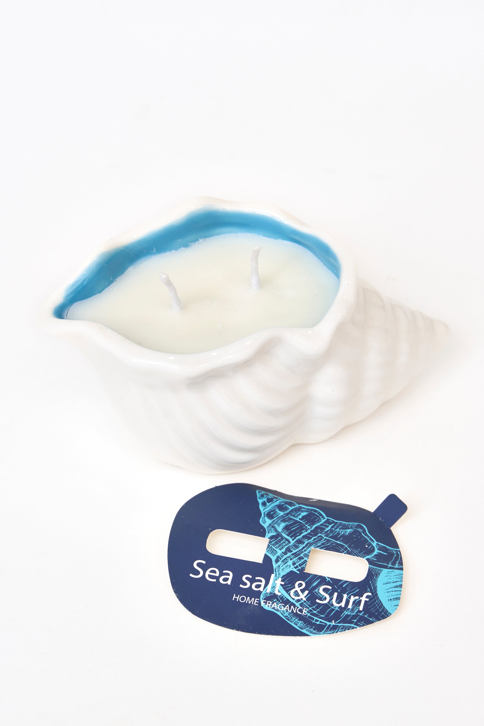 Vela decorativa presentada en un recipiente con forma de concha, inspirada en el mar y la vida costera. Un diseño original y luminoso que aporta calidez y un toque natural a cualquier espacio